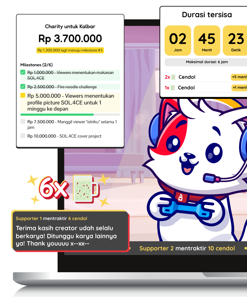 Trakteer itu all-in-one platform buat para kreator, Jadi bukan cuma streamer aja, tapi juga cosplayer, komikus, podcaster, dan lainnya, semua bisa cuan dari karya mereka. Selain itu, Trakteer punya tampilan yang lebih rapi, gampang dipahami, dan ada currency “Trakteeran” yang lucu. Fee-nya juga kompetitif banget (5%), dan proses pencairannya bisa instan lho.